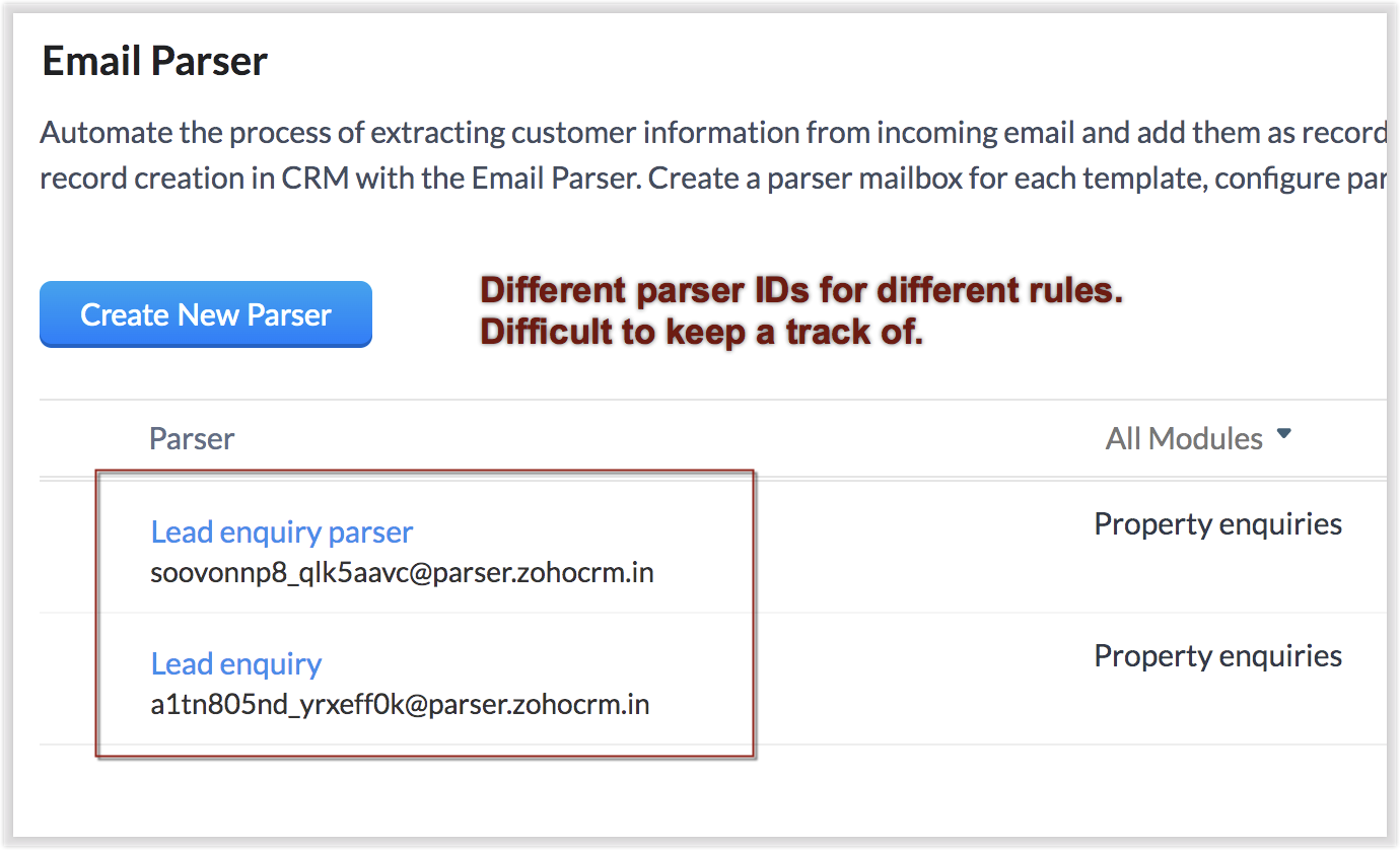 到目前为止,您可能已经为接收到的电子邮件创建了多个邮件解析器,以便在不同模块下生成记录。 考虑到我们用户的最大利益,我们对这个功能做了一些改进,我们相信会让你的体验更好,更容易。