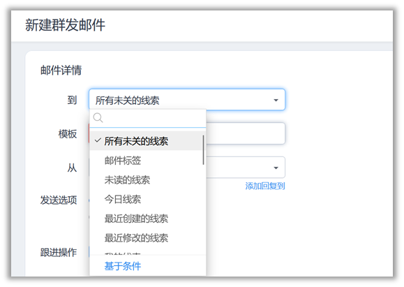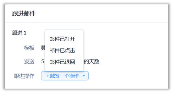 例如,您可以在联系人打开或点击邮件时设置一个跟进任务,例如发送产品详细信息。同样,您可以设置为在邮件退回时触发字段更新。