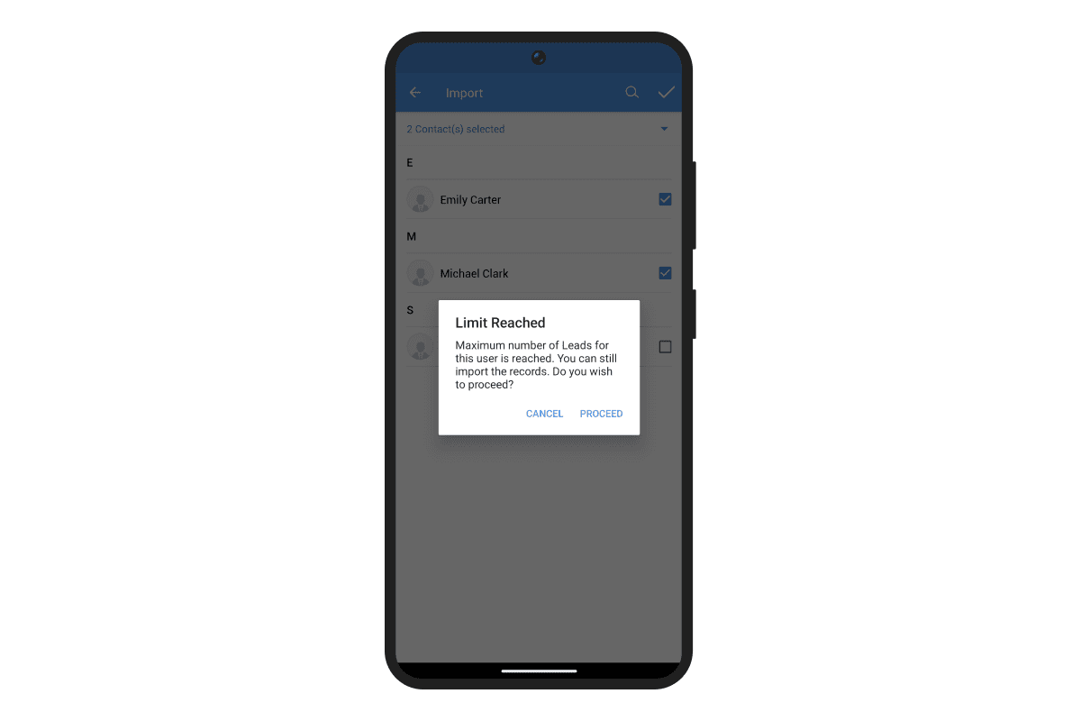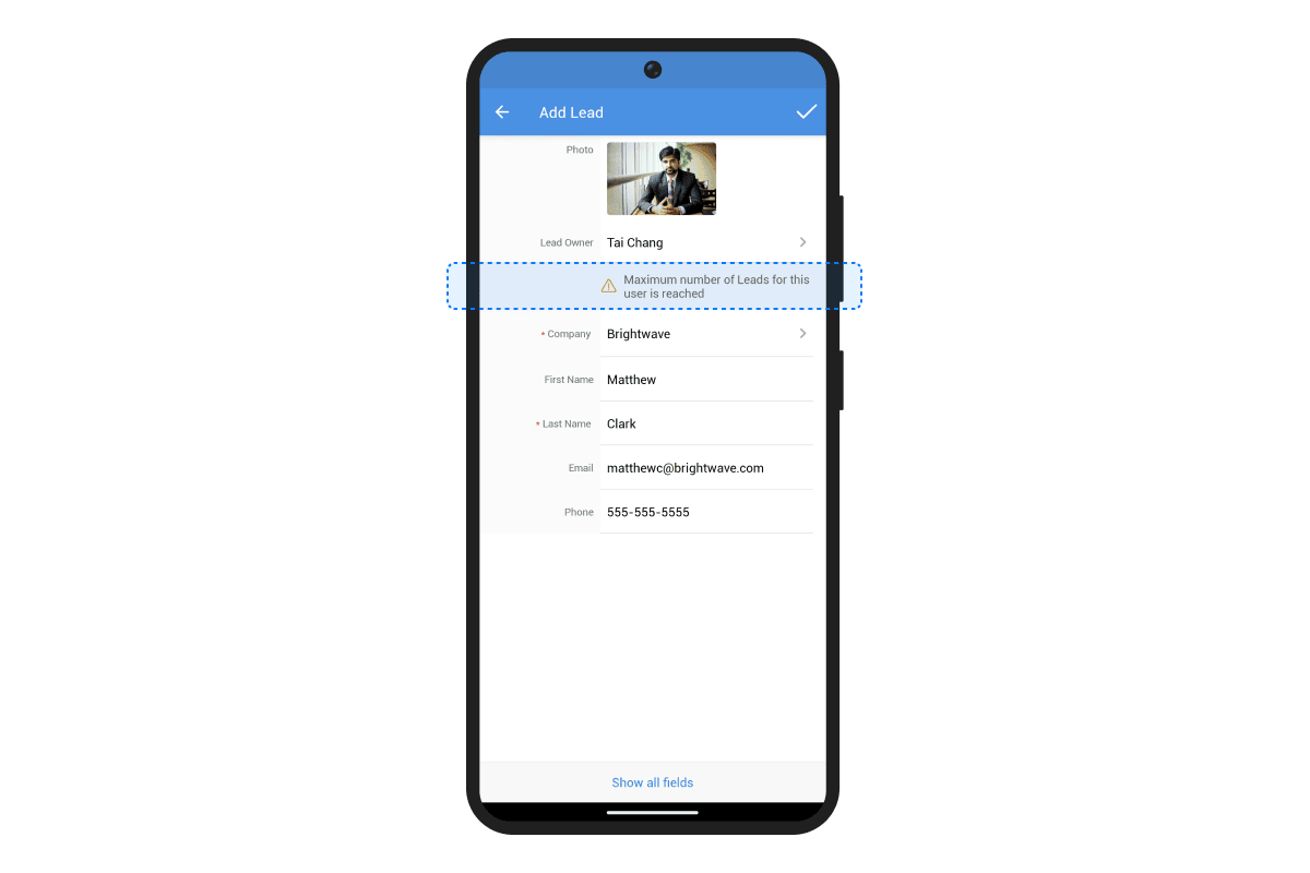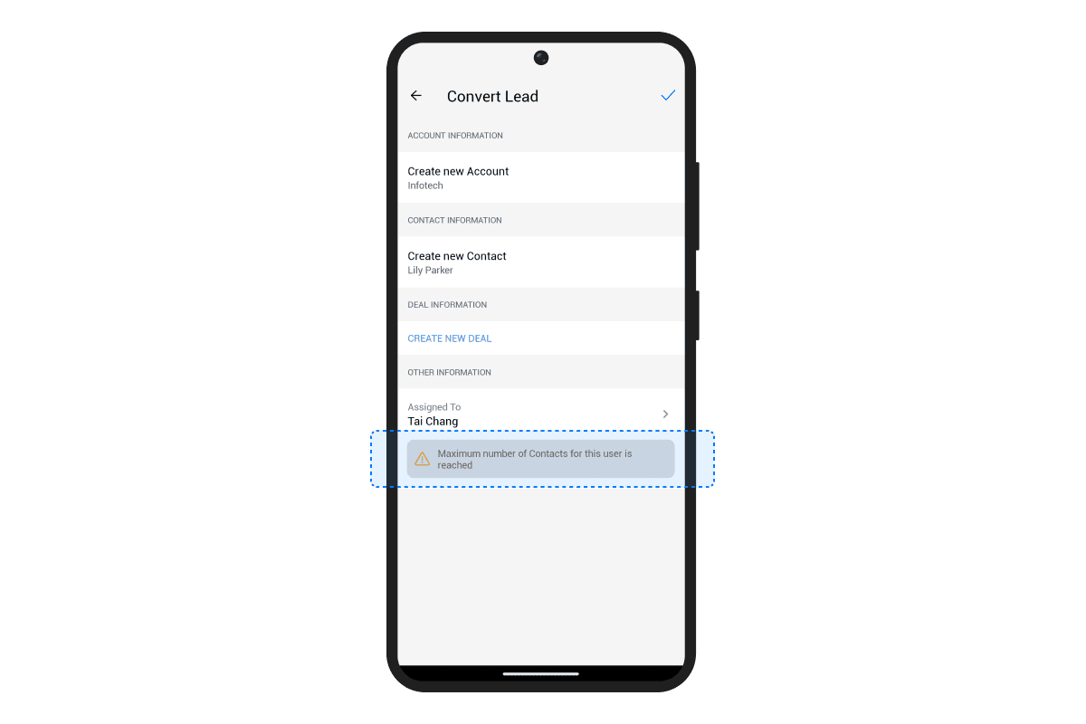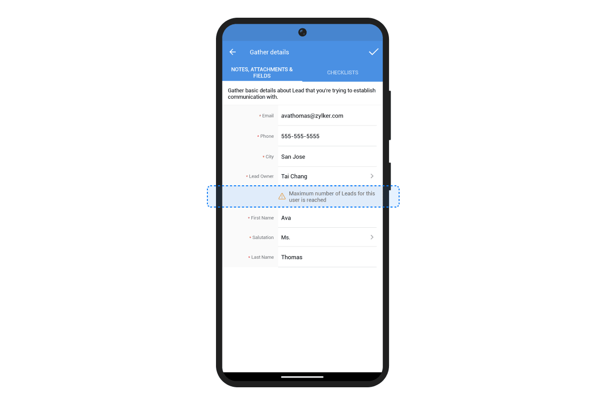 在 Zoho CRM 安卓应用中,分配阈值在以下区域可见,以帮助管理工作量并确保更好的任务分配: