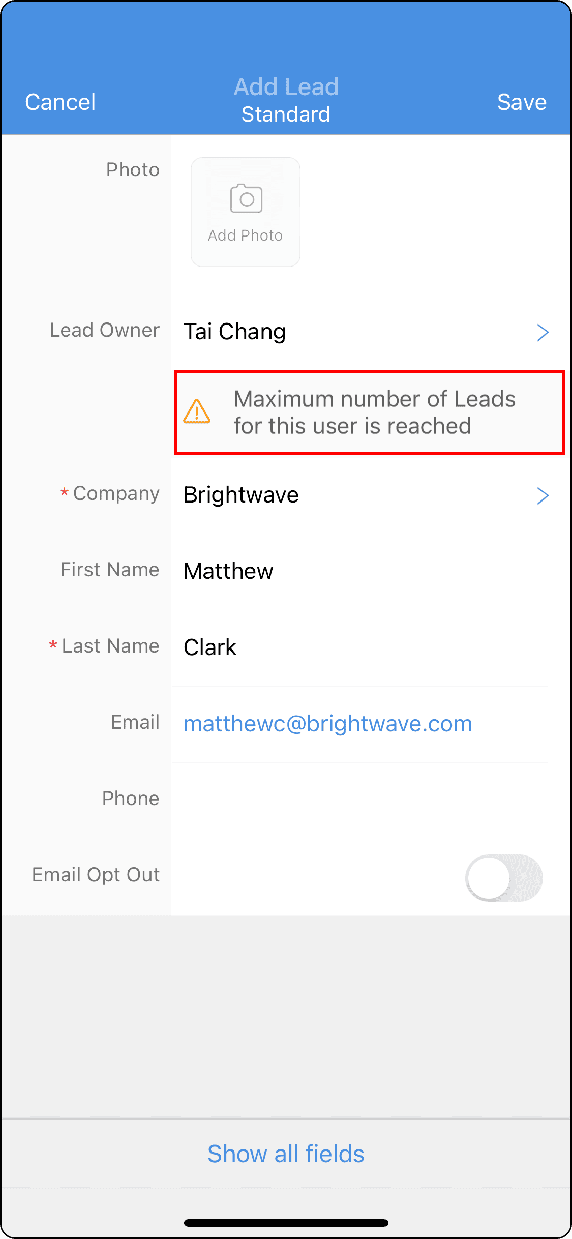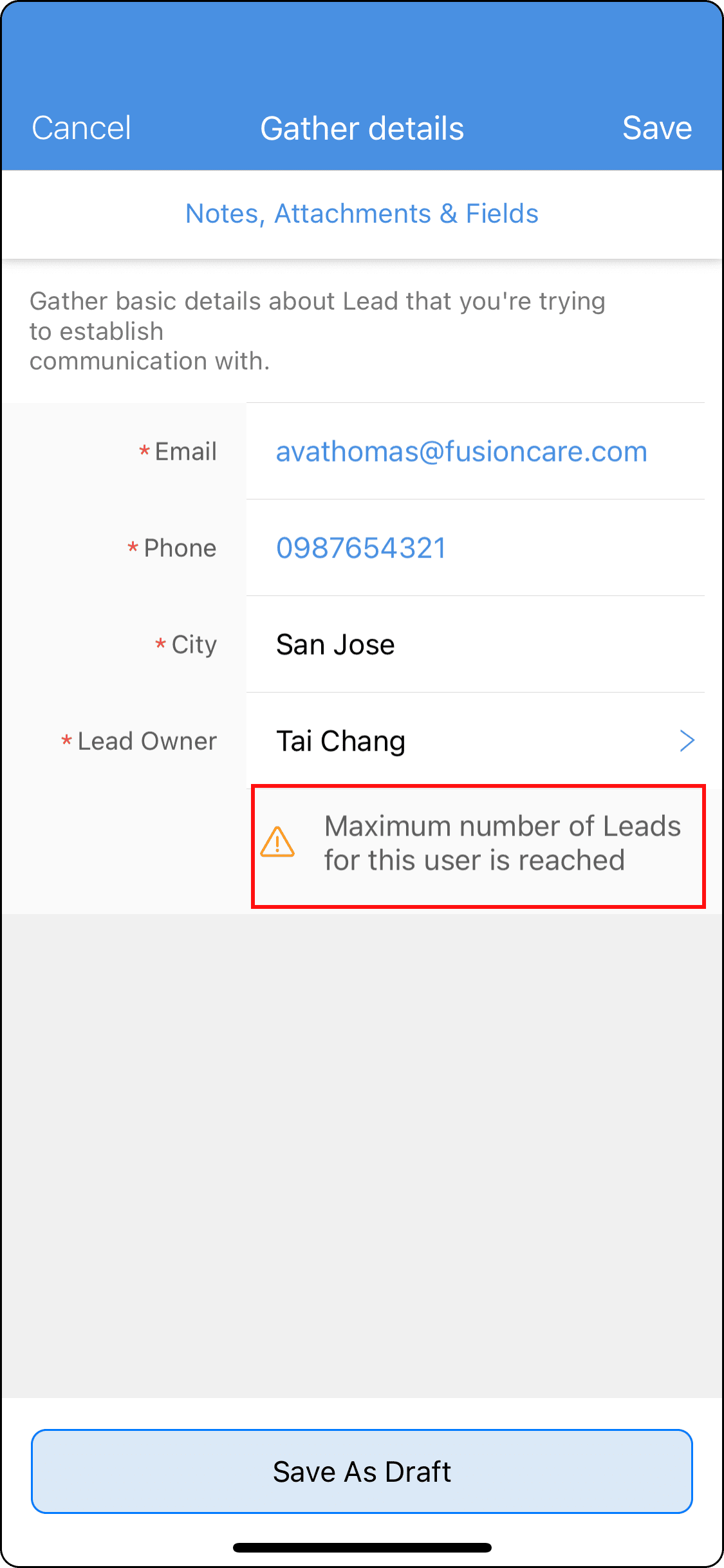例如,如果用户的阈值设置为 10 条记录,当超过此限制时,在移动设备上会出现告警,通知被分配人。如果需要,他们可以将记录重新分配给可容纳量更多的用户。
