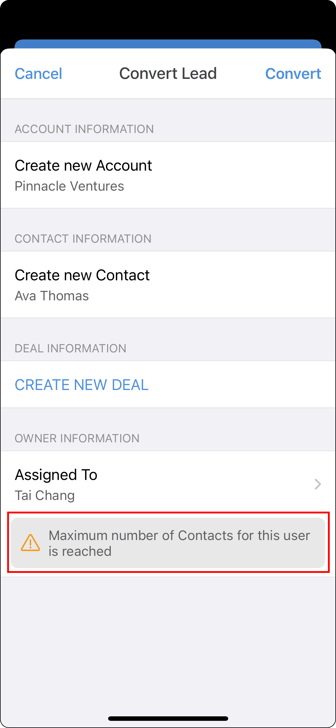 在 Zoho CRM iOS 中,分配阈值在以下区域可见,以帮助管理工作量并确保更好的分配: