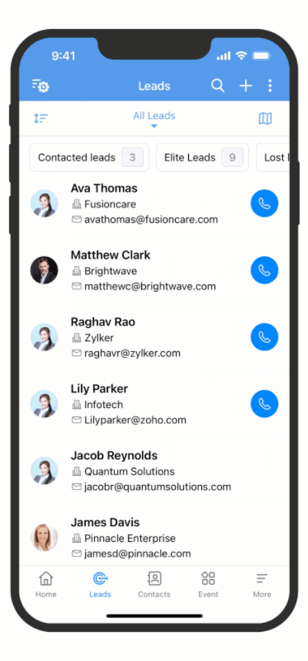 Zoho CRM iOS 应用中的记录共享功能,用户可以轻松地将重要记录与整个机构或特定用户、职位或组共享。