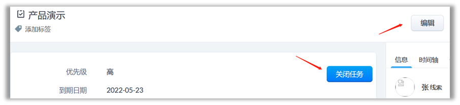 例如,Emily Ross 是 Zylker Inc. 的销售经理,在 CRM 帐户中具有管理员权限。因此,她可以编辑或关闭她共同拥有记录中的任务。