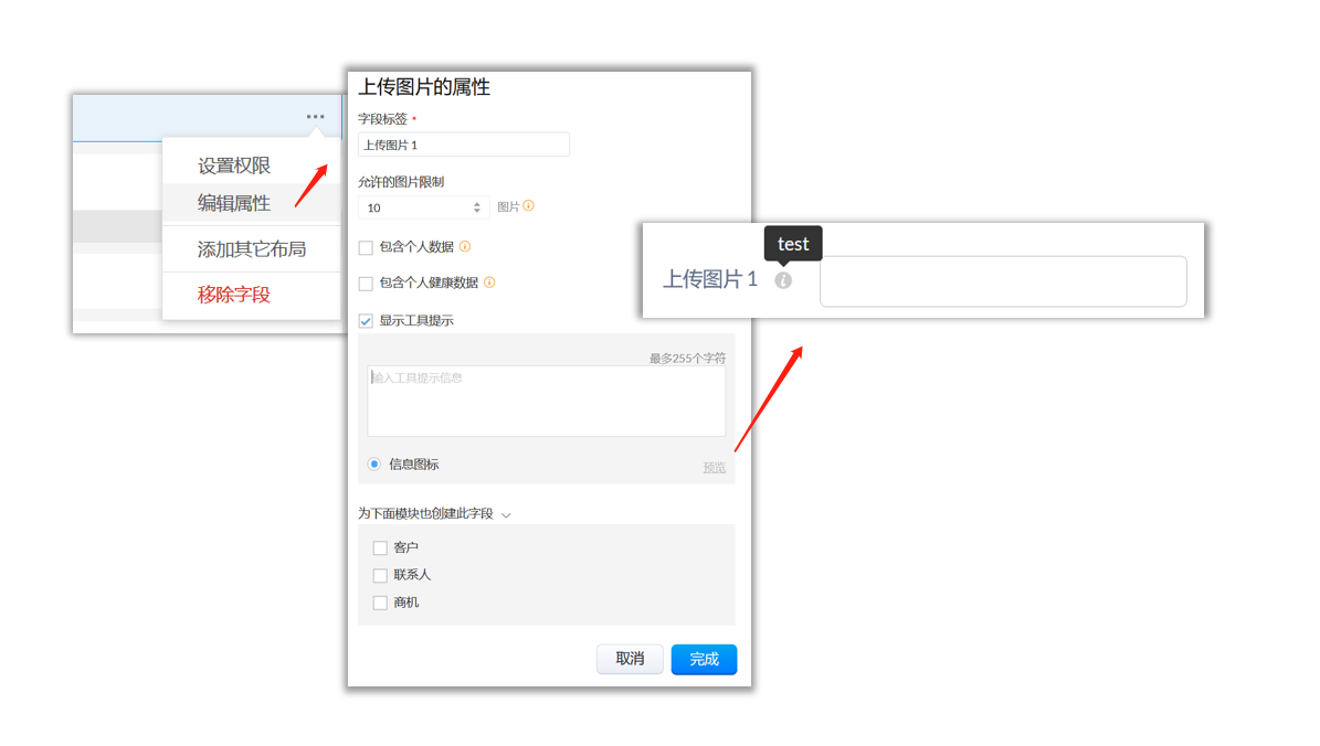 通过编辑字段属性,您可更改字段标签及添加工具提示。您还可以预览工具提示。