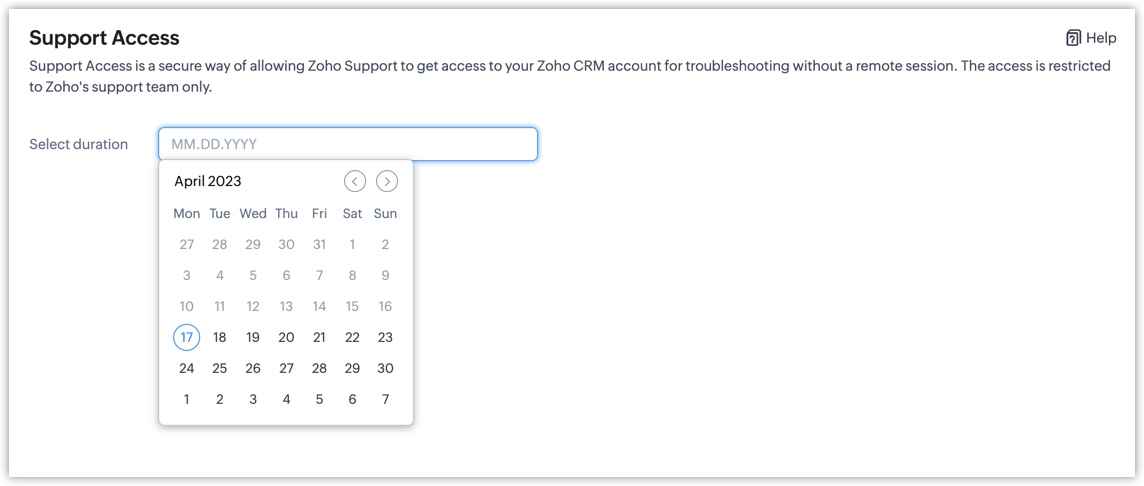 在技术支持访问页面中,提供一个日期。 在选定的日期之前,从您激活它的时间开始,技术支持团队都可以访问您的帐户。 您至少可以提供一天的技术支持访问。