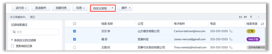 自定义有利于构建灵活的CRM系统。在 Zoho CRM 中,您可以定制模块、字段、页面、链接以及很多其它元素。 除了这些元素以外,您现在可以使用 自定义按钮 高级功能创建新的按钮。
