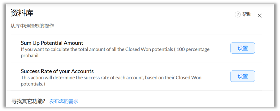 Zoho CRM 在库中提供了一些预设的按钮操作,这些操作可以与自定义按钮关联,在任何需要的时候用于不同业务场景。