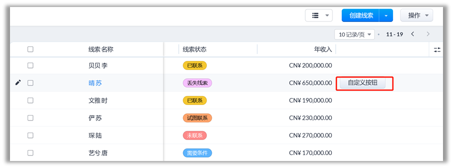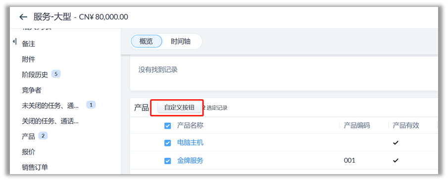 - 如果您将自定义按钮放在 列表视图 页面,请确保您在执行按钮操作之前至少选中一条记录。