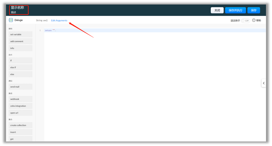 - 在Deluge脚本编辑器 中编写您需要的函数。
