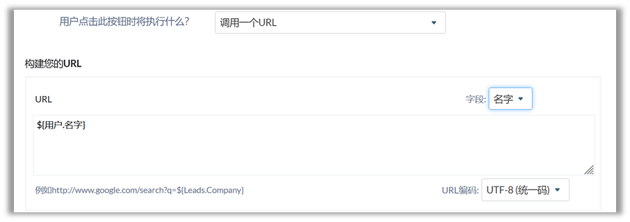 - 从下拉列表中选择字段。 将插入字段变量作为URL的一部分。