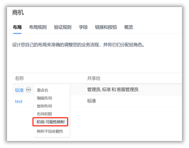 您还可以点击商机模块布局旁边的 更多 按钮来选择阶段-可能性映射
