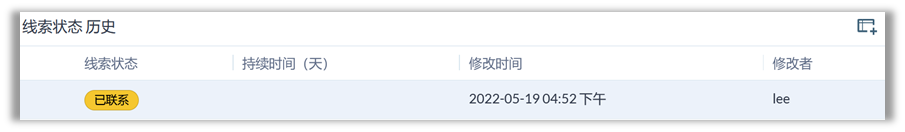 场景 1.销售经理想要查看线索转换过程中出现重大停滞的阶段。因此,他追踪“线索状态”选择列表字段以了解线索在每个特定阶段消耗的时长。追踪结果显示线索在转为“已联系”之前,在“未联系”阶段停留了15天。由于“线索状态”的每次转换都有记录,所以此更新很容易被追踪到。