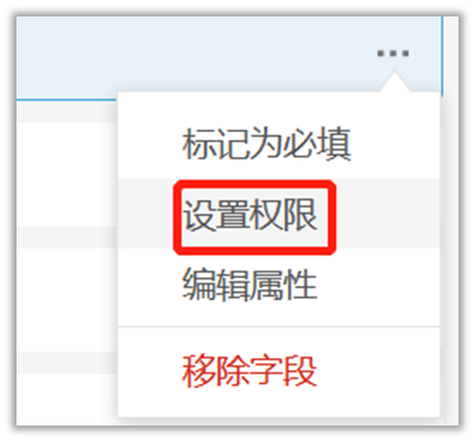 - 转至必填字段,点击 设置 图标,然后选择设置权限。