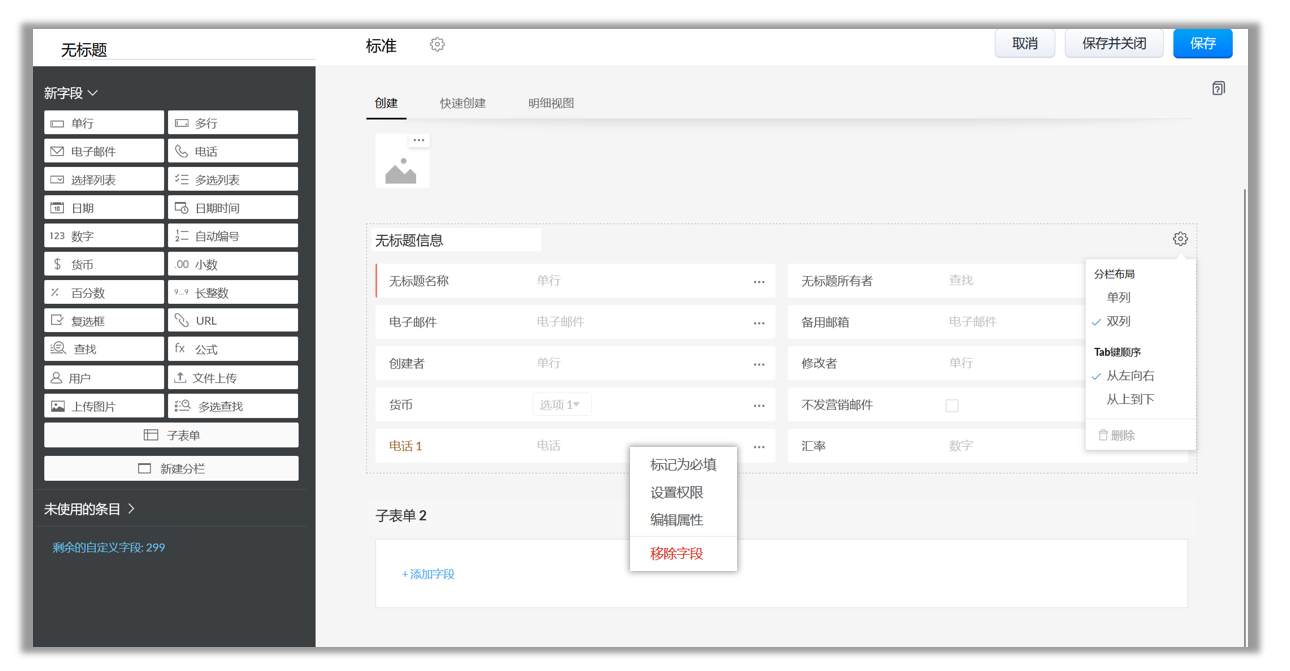 每个企业都有自己独特的销售、服务和营销流程,这就是为什么Zoho CRM支持定制,以满足您的业务需求。作为管理员,重要的是确定并列出这些需求,并以最佳方式定制产品以满足这些需求。有不同层次的定制,如创建自定义模块,基于优先级组织模块,根据偏好重新排序,添加或删除记录的相关列表细节,为记录创建自定义视图,创建自定义视图记录,在模块中添加新的部分以获取更多信息,等等。这些不需要您写代码来实现,仅需使用我们简单好用的定制工具。