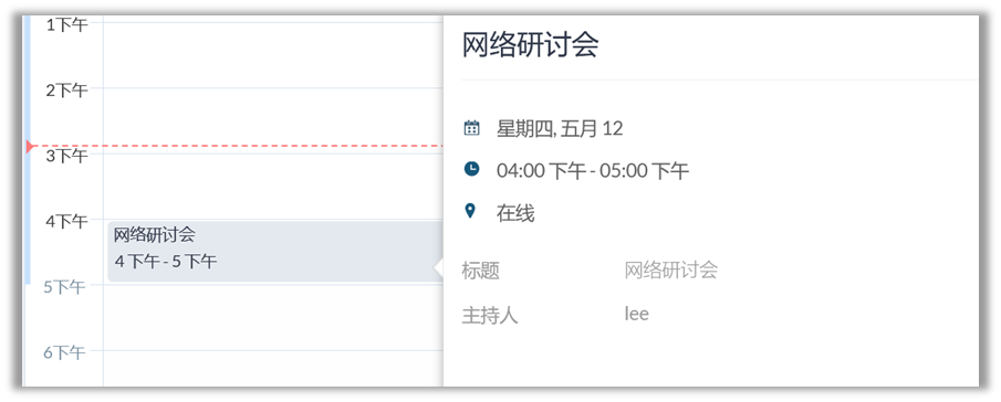 - 快速查看 - 在日历中查看会议时,您可以选择只快速浏览关于会议的最重要信息。可以在“快速查看”中定义。