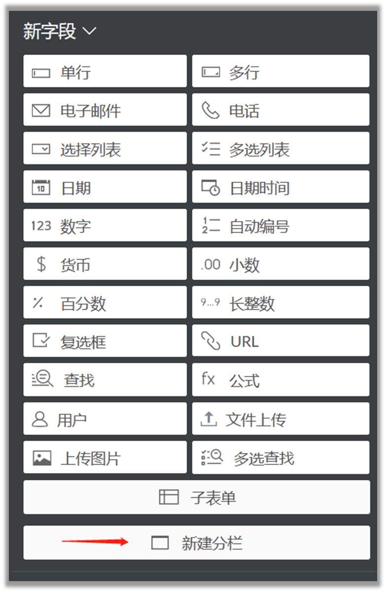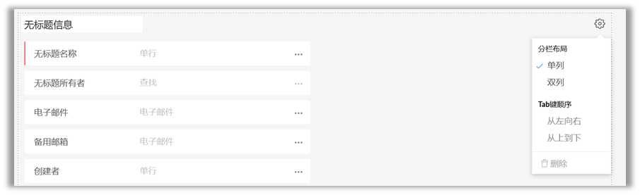 单列布局允许一个字段列在另一个字段下面,从上往下逐一排列。