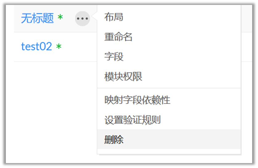 - 通过设置图标对字段编辑“字段属性”和“设置权限”。使用回收站图标从“布局”中移除字段。