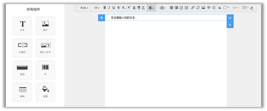 要将文本添加到模板,您只需要将文本组件拖放至所需位置。