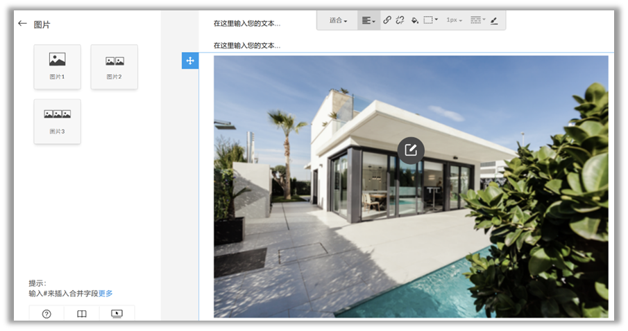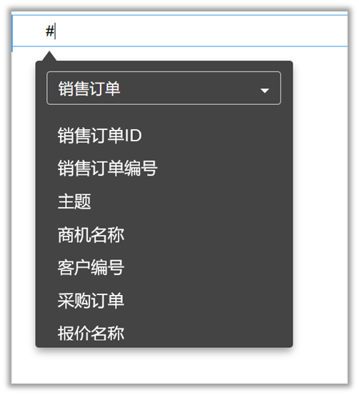 要获取要显示的合并字段的列表,请在文本区域中输入 # 并从下拉列表中选择所需合并字段。