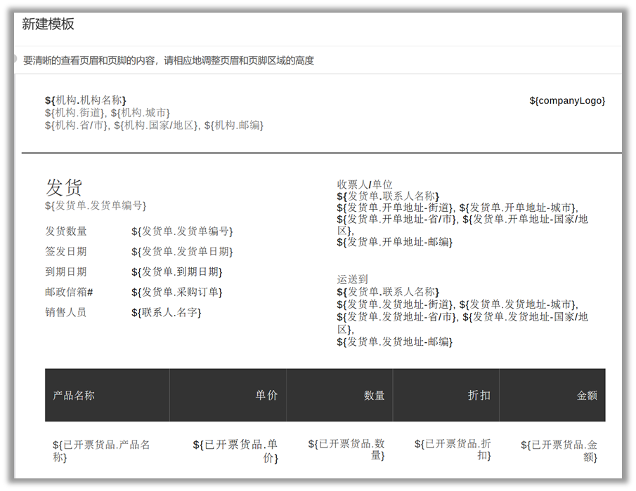 1. 公司logo也是作为合并字段提供的,因此您可以将它插入在需要的任何位置。
