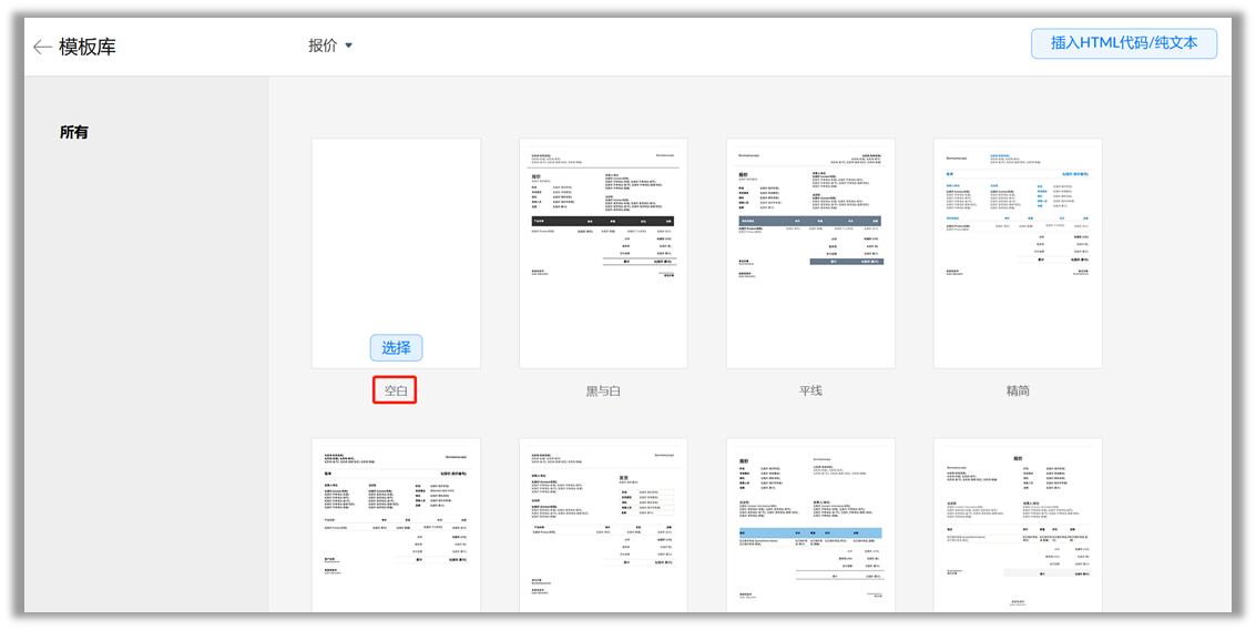 - 在 模板库 中,点击插入 HTML 代码 / 纯文本链接。