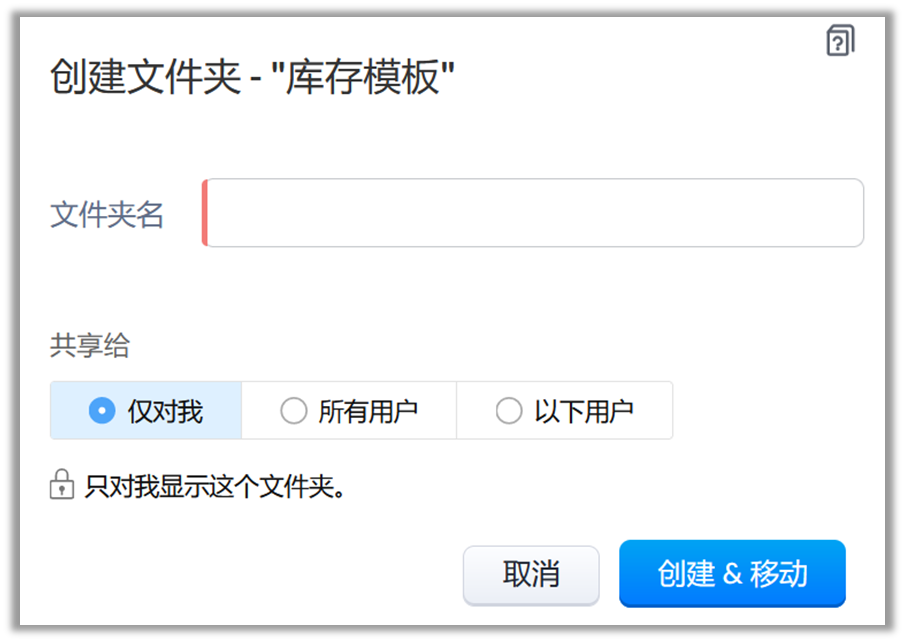 - 如果您希望在移动模板时创建文件夹,创建模板后点击+ 新建文件夹,输入文件夹详细信息,点击创建。