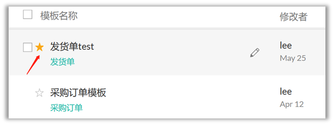 如需基于修改时间对模板进行排序,则点击修改者列。
