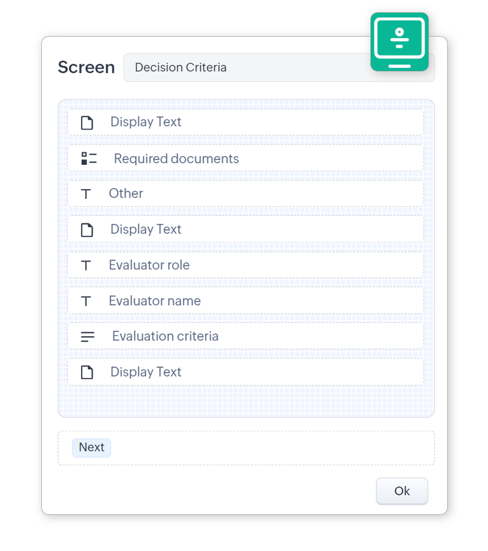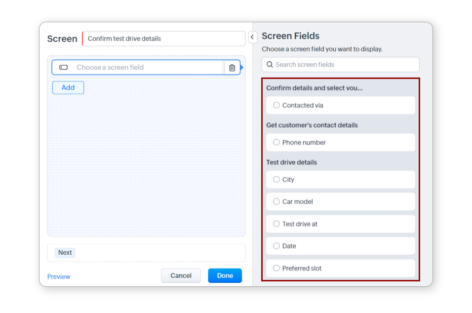 3. 屏幕字段: 屏幕字段组件可让您显示在先前屏幕收集到的字段数据。
