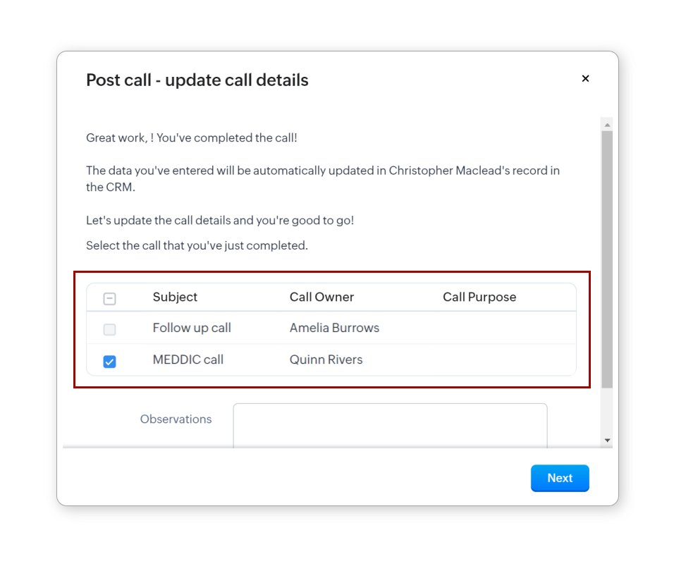 屏幕用户向用户显示文本、字段、来自CRM的数据、从先前屏幕收集的数据以及下一步操作的按钮。每个按钮代表交互信息界面构建器流程中的一个分支。在屏幕字段中输入的数据以及从CRM中提取的数据可在后续屏幕中使用。 CRM 用户看到的屏幕是这样的: