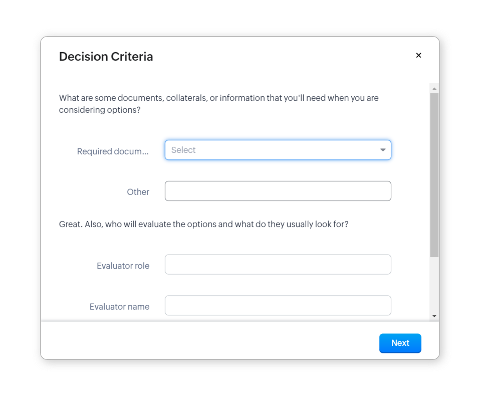 您可以使用 Zoho CRM 轻松构建无代码交互信息界面构建器,为您的 CRM 用户带来便利。在开始构建交互信息界面构建器之前,您需要了解以下内容: 创建交互信息界面构建器的目的是什么? 现有流程是什么样的?有哪些障碍点? 交互信息界面构建器应该放在CRM什么位置? 交互信息界面构建器的流程有哪些步骤?每个步骤中需要显示或收集哪些详细信息? 什么操作应该通过自动化完成以及何时完成?应该在每个步骤之后进行操作还是流程最后? 管理交互信息界面构建器 您可以通过导航到 设置 > 定制 > ...