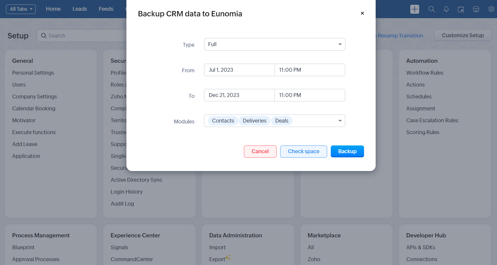此文档提供了如何使用Zoho CRM 的 定制内容复制 功能的说明。 对于功能概述,请参阅复制定制 - 概述。 定制内容复制是Zoho CRM中的一个免费、无代码的工具,使您能够发送和接收完整的CRM配置,而无需自定义代码。定制内容复制不会将数据从一个CRM帐户复制到另一个。 要在两个Zoho CRM机构之间复制数据,请查看在Zoho CRM帐户之间迁移数据。 相关权限 可用性和限制 术语 相关权限 管理员角色的用户,能够访问定制复制。 可用性和限制 版本 ...