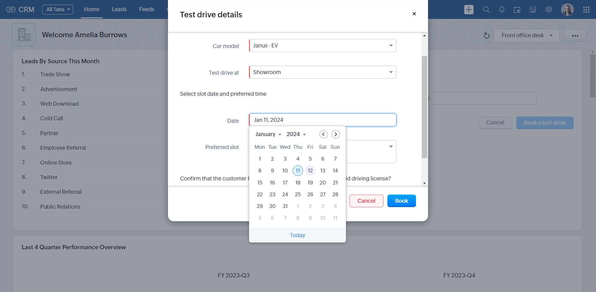 2. 一家汽车经销商在CRM主页构建了一个交互信息界面构建器,可直接添加线索并进行预约试驾。