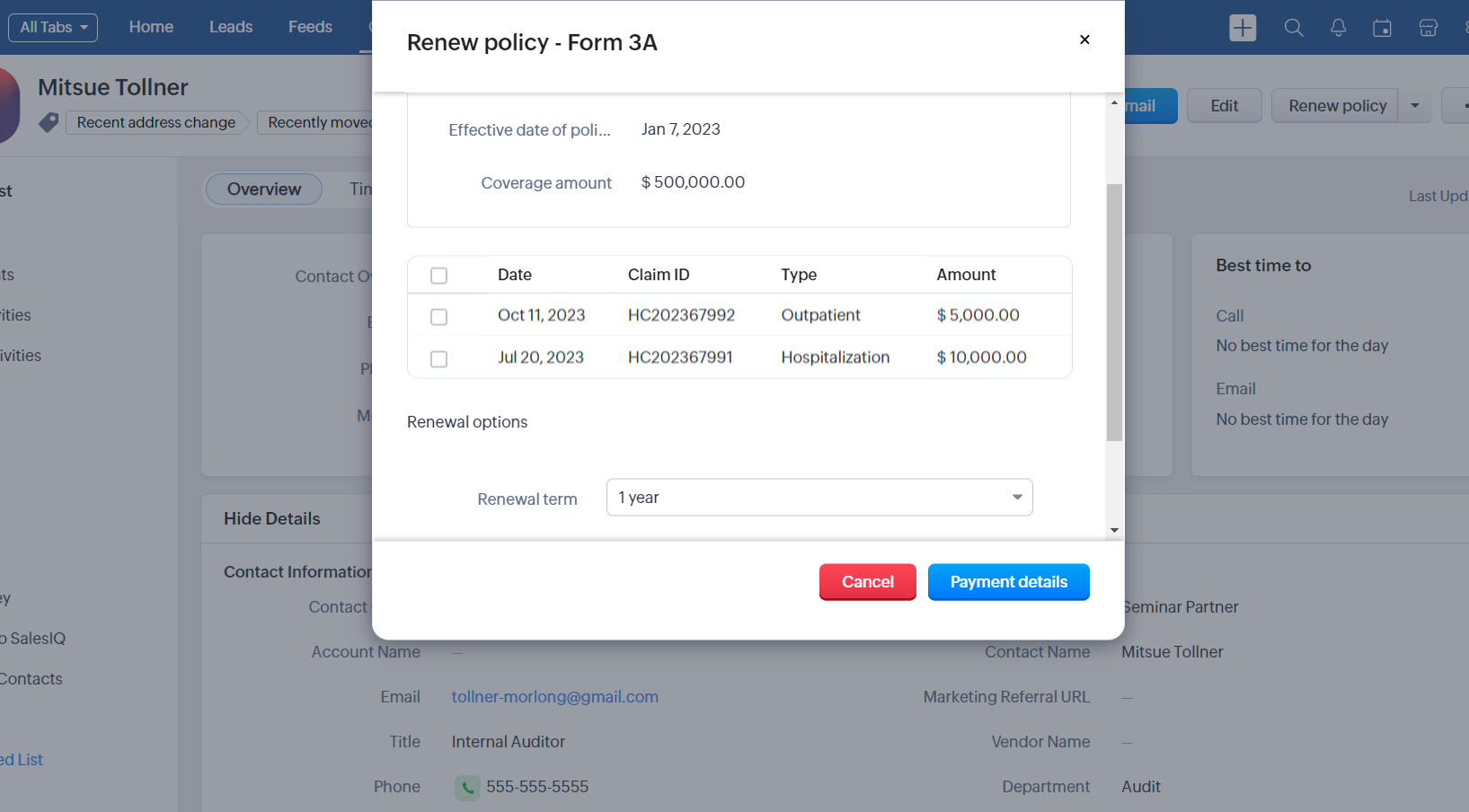 3. 以下交互信息界面构建器可从CRM引入所有相关数据,使续保合同更加便捷。