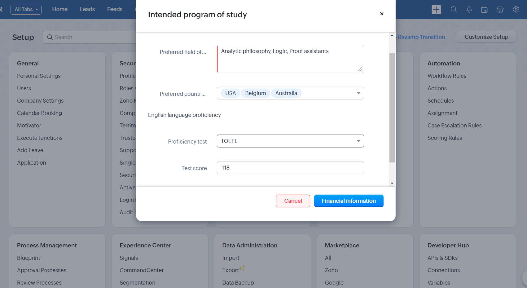 交互信息界面构建器是Zoho CRM中的无代码自定义工具。可让您创建具有自定义用户界面和操作的交互信息界面构建器,以便与CRM及其他系统中的多个模块进行无缝交互。它提供了设计个性化界面的灵活性,增强了用户体验和效率,无需编码即可构建任何自定义功能。