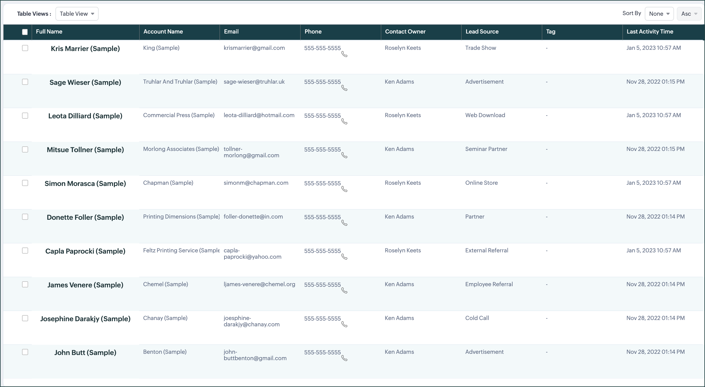 - 看板视图是一种基于生产力的视图,它使您能够根据不同的字段对记录进行分类,例如线索来源、状态、行业等等。如果您希望基于特定属性监视进度或索引记录,那么它特别有用。 点击这里了解更多关于看板视图的信息。