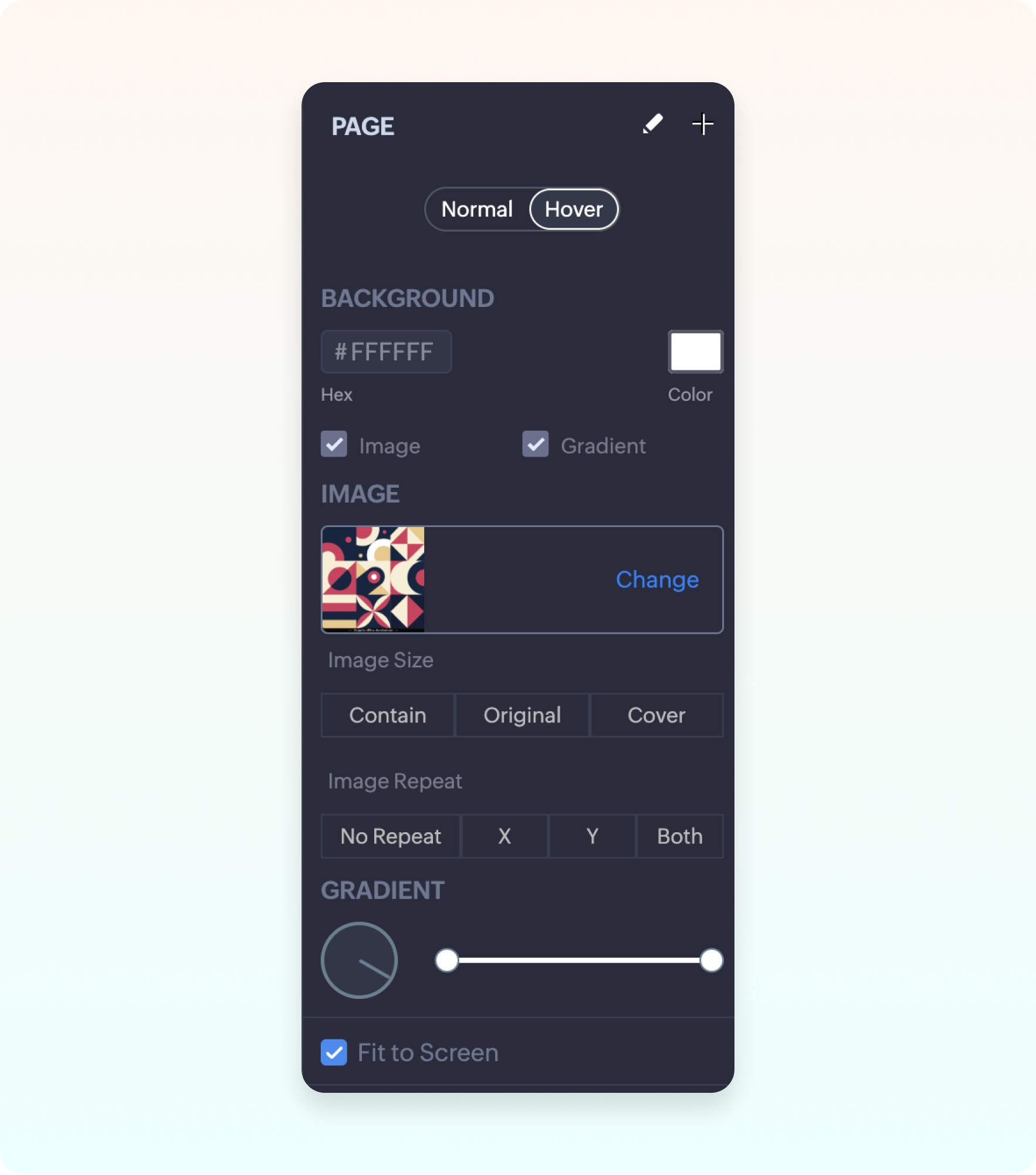 - 当鼠标悬停时,可以为画布背景配置类似设置。