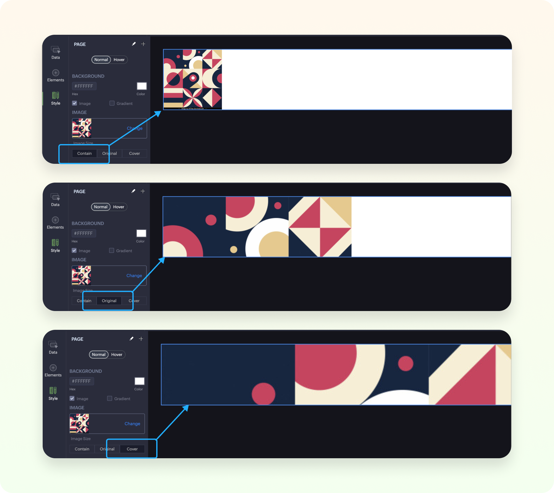 - 样式: 为数据和元素增加美学价值。 设置背景颜色和边框,调整半径,添加阴影,调整填充和边距。 您还可以选择自定义静态和悬停文本的字体类型和颜色。