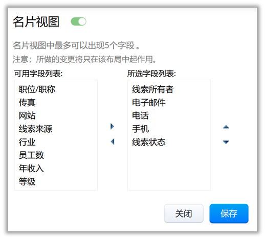 您可对记录详情页面中的名片的字段重新排序或移除字段。