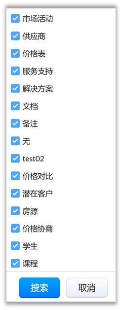 - 您可以通过选择在CRM中搜索的模块来过滤搜索结果。