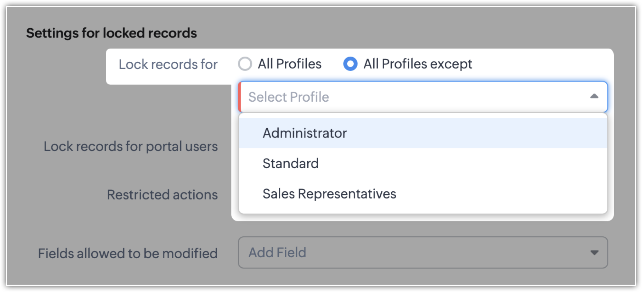 - 您可以选择针对所有角色锁定记录,或者部分角色。