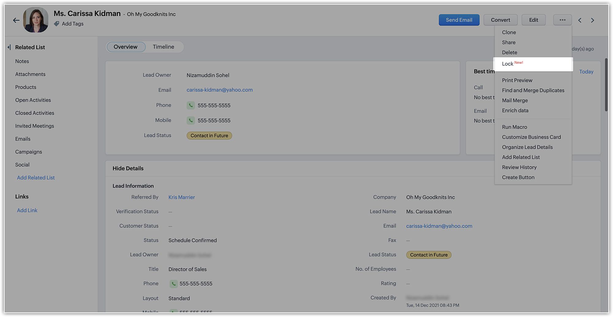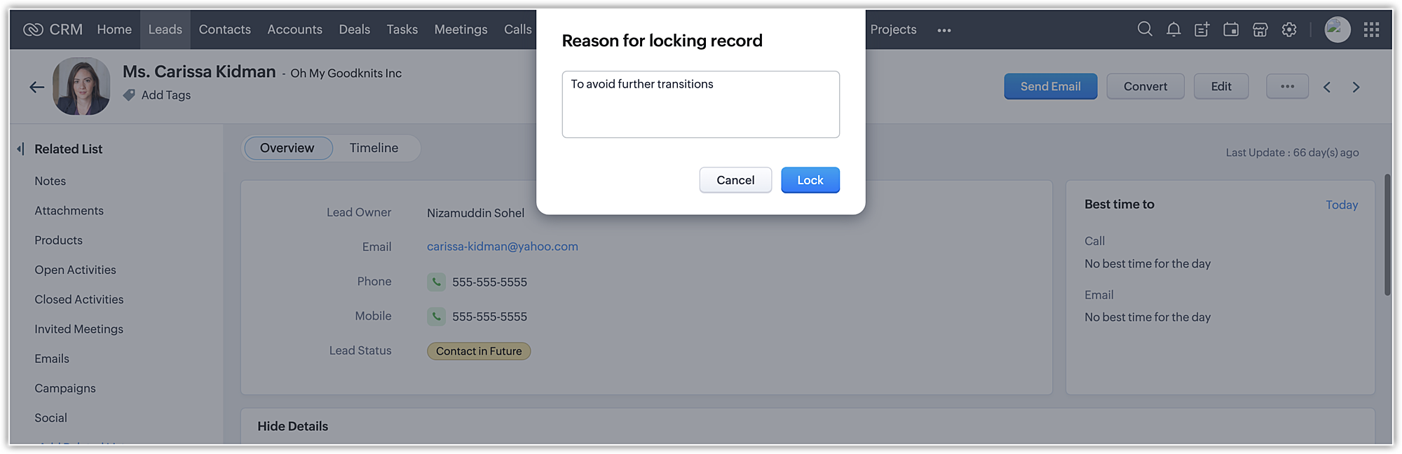 同时,锁定的记录仍将从CRM推送到Zoho Desk。