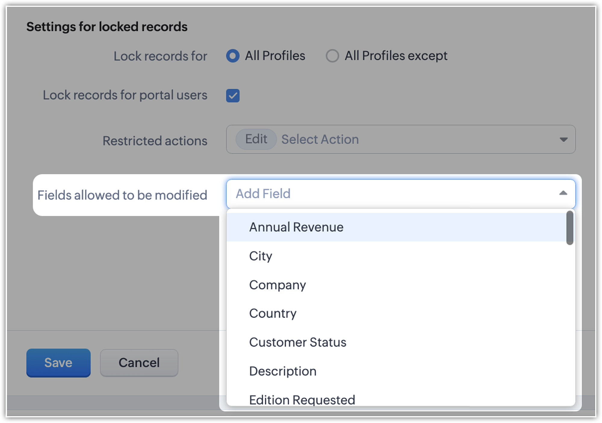 - 锁定记录 - : 选择为全部角色锁定记录,或特定角色。