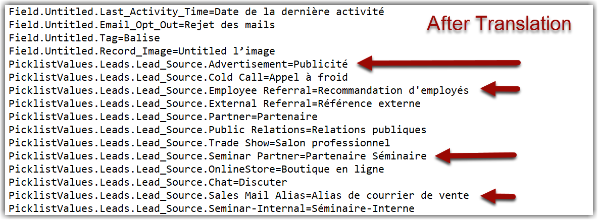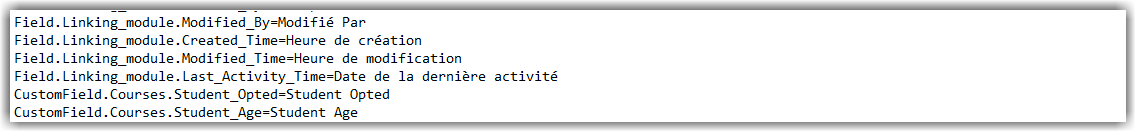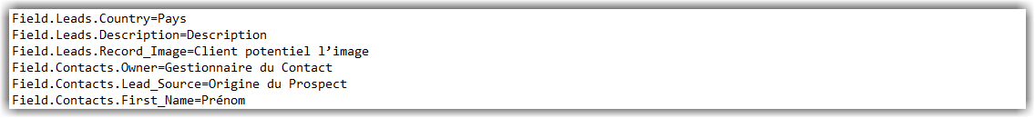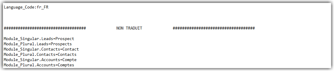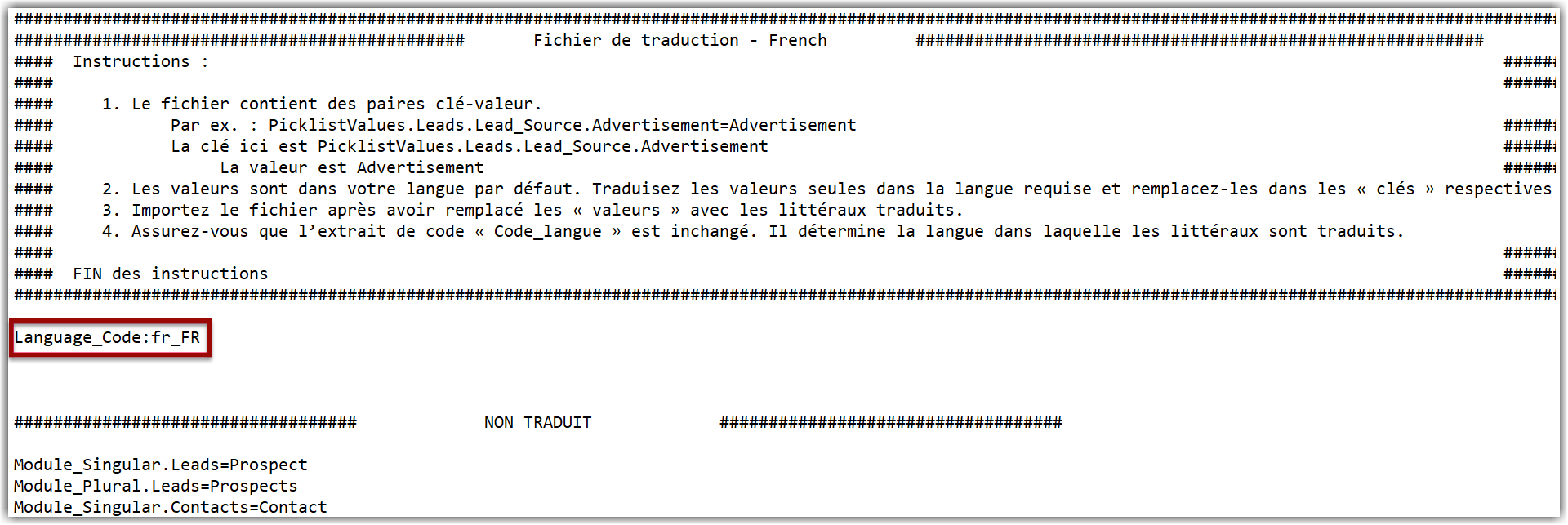 - CRM 中的每种语言都有单独代码表示。将已翻译文件导入至 CRM 帐户时,文件将在语言代码的帮助下映射至相应语言。下面是法语语言代码: