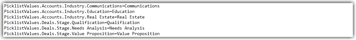 所有模块,子表单,相关列表,以及可翻译的其它标签都将在导出的文件下列出,如下图所示: