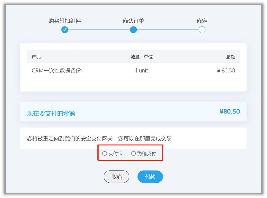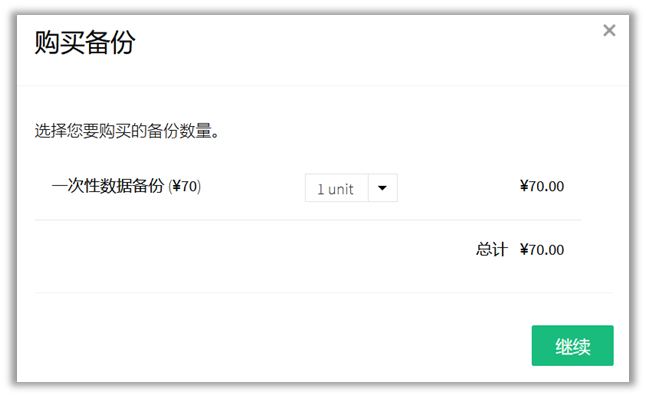 免费数据备份次数用完之后,如果您想要继续备份,那么就可以购买一次性数据备份附加组件。