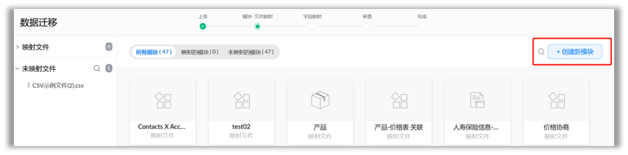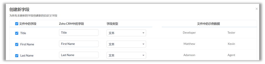 Zoho CRM 中的数据迁移向导确保您的数据准确迁移,并帮助您减少许多手动工作。它自动将导入文件映射到 CRM 模块,并将文件中的列映射到 Zoho CRM 字段。如果模块还不可用,Zoho CRM 会创建这些模块并将相关文件映射到其中。并且清楚地显示已映射、未映射和不受支持的文件数量。