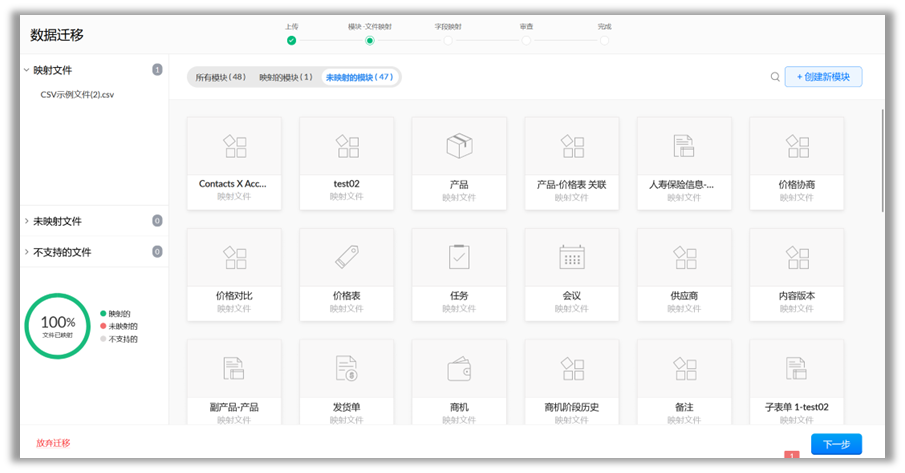 可以将以下受支持的模块从一个 Zoho CRM 帐户迁移到另一个 CRM 帐户: