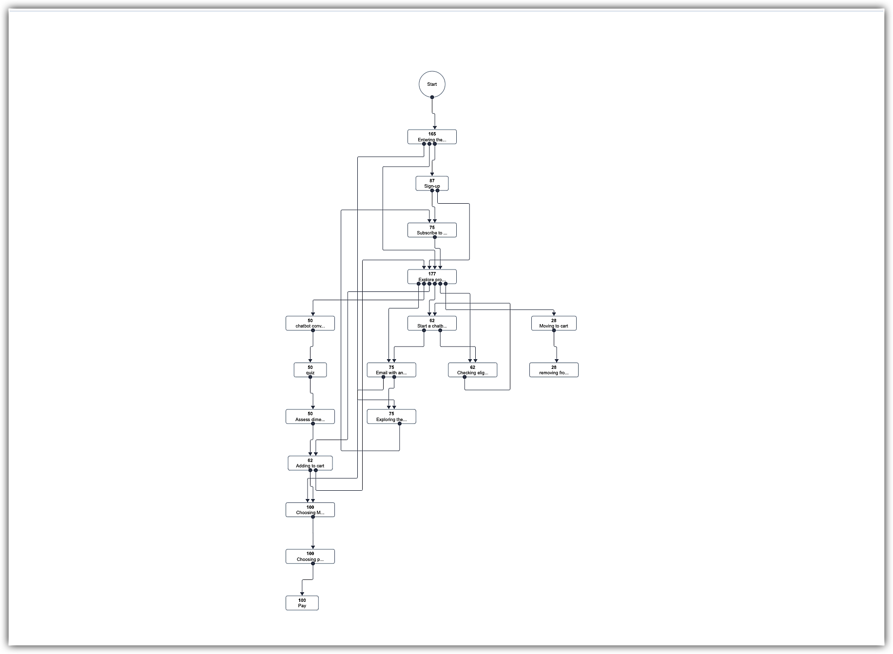 这是一种旅程地图,企业长期以来一直在创建,以了解客户行为并定制客户体验。 正如您所看到的,这张地图本质上是假设的,相互作用是不现实的。 为了广泛地了解客户行为并做出真正的改变,您需要一个能够基于实时交互生成路径的系统工具。