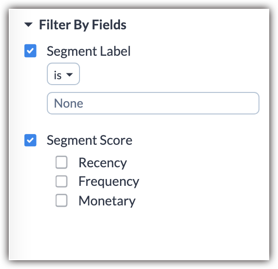 是的,您可以在应用了细分的模块的高级过滤器内使用 字段 - 细分标签 和 细分得分 (RFM 值) 来筛选记录。