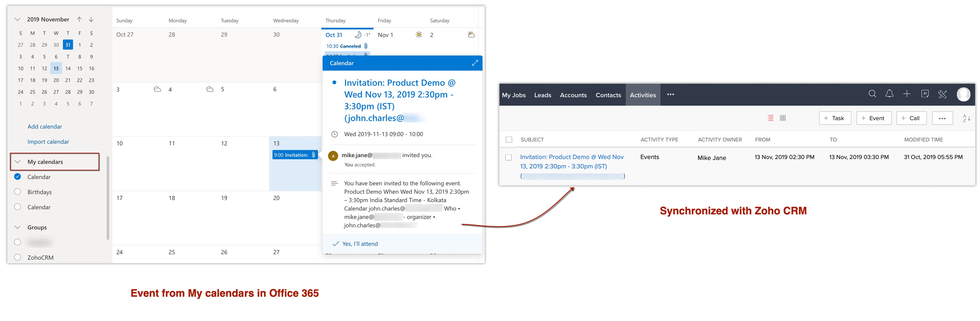 您在 Zoho CRM 或 Office365 日历中安排的会议现在将相互同步。